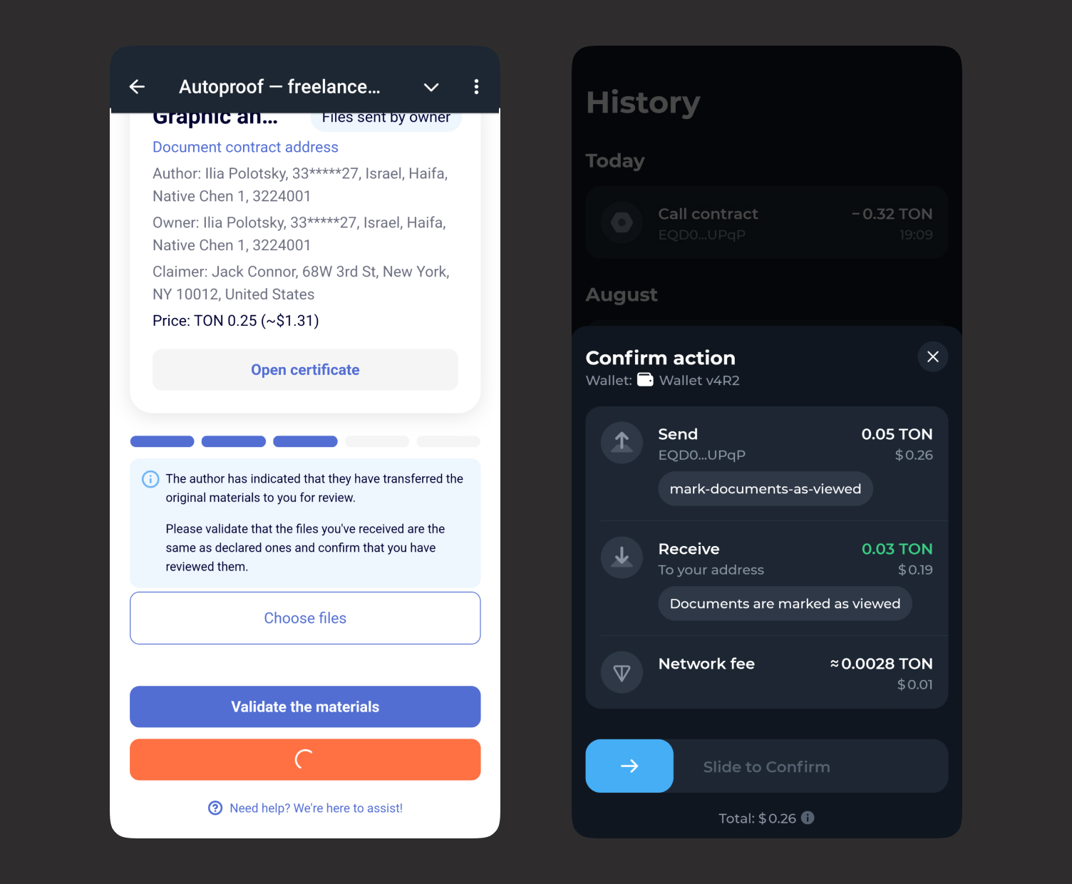 After the service freezes the funds until the transaction is completed, you will have the opportunity to review the source files and decide whether to agree to or cancel the transaction.